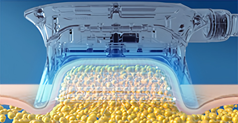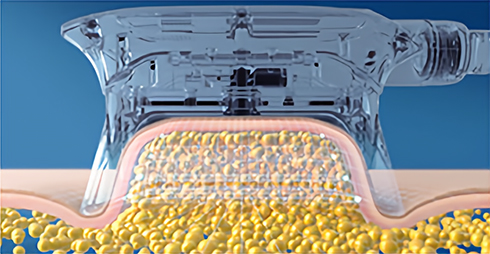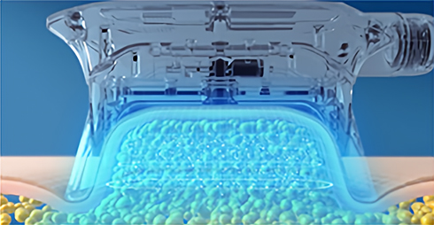 쿨링에너지 전달접촉된 피부를 통해 냉각에너지가 지방세포 조직에 전달됩니다.