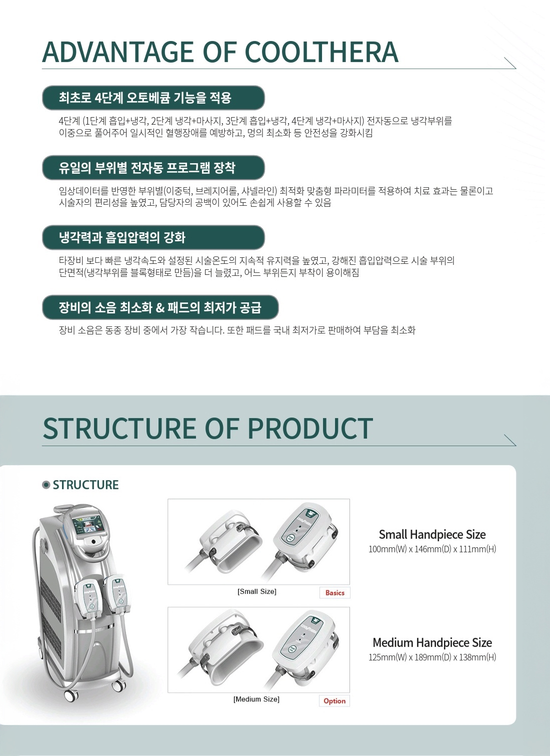 진공 압력을 이용하여 피부에 핸드피스의 냉각판을 접촉, 낮은 온도의 냉각에너지를 유지하는 비침습적 방식으로