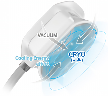 진공 압력을 이용하여 피부에 핸드피스의 냉각판을 접촉, 낮은 온도의 냉각에너지를 유지하는 비침습적 방식으로